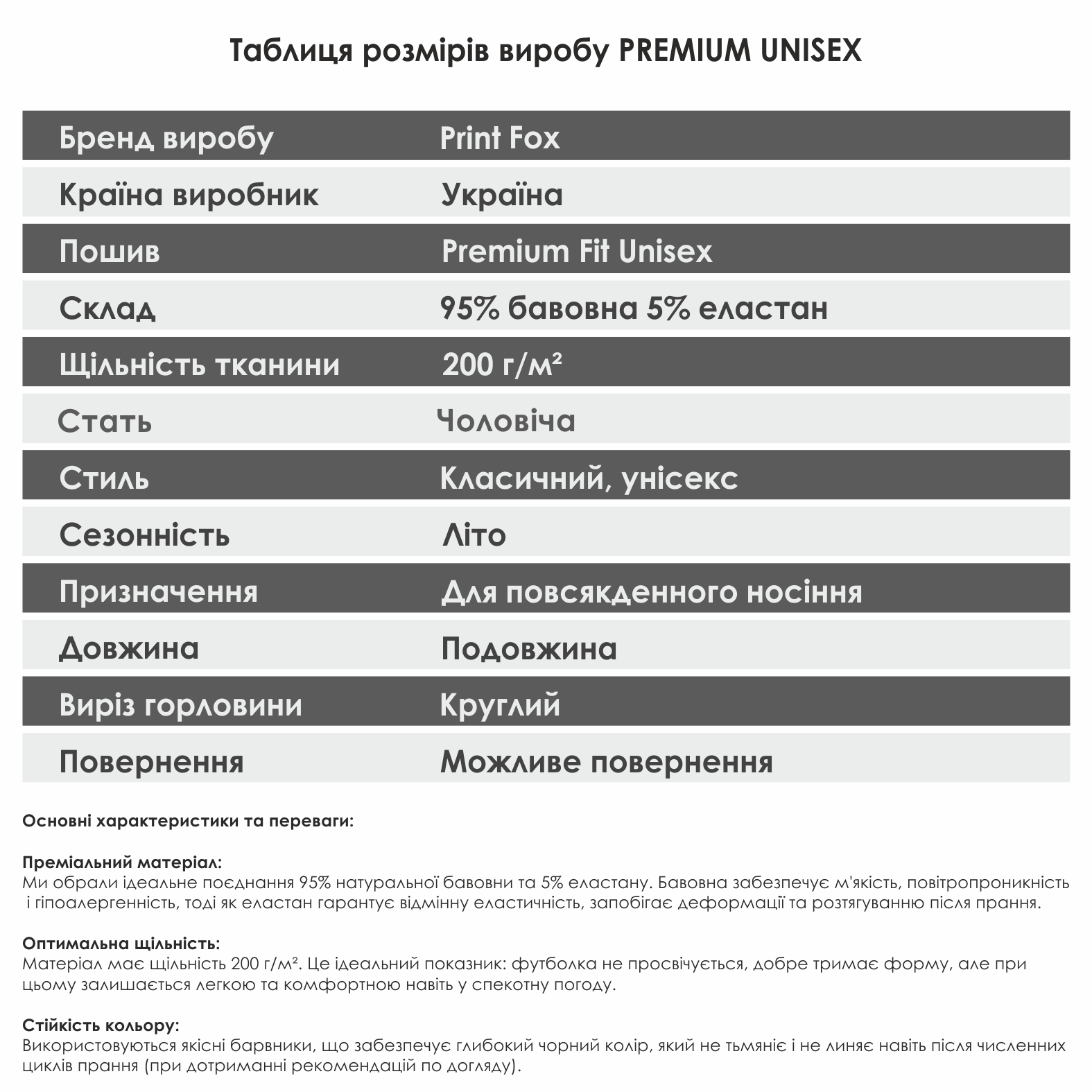 • Модель:___ Premium Fit Unisex