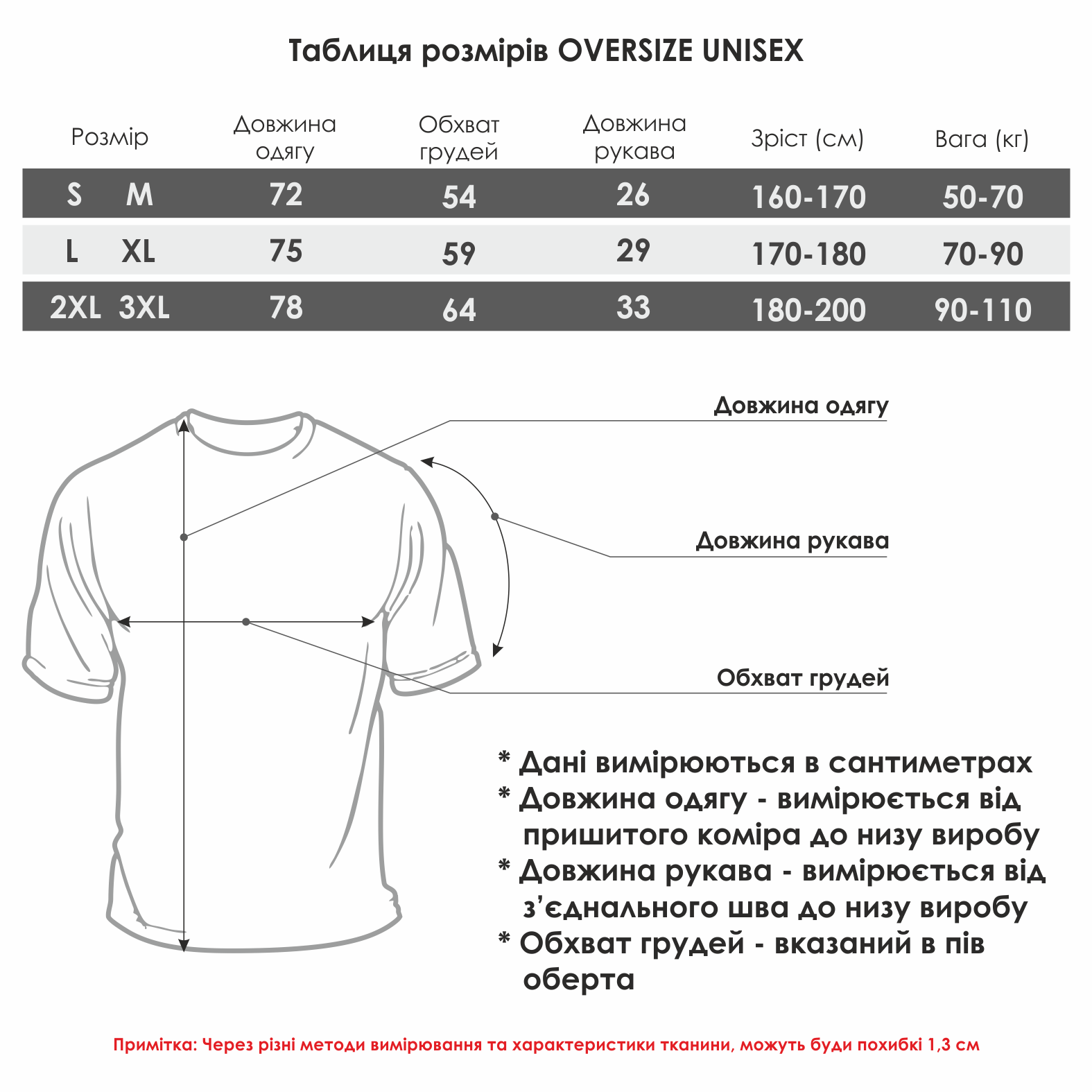 Ми використовуємо спарені розміри (S-M, L-XL, 2XL-3XL). Щоб обрати ідеальний варіант, радимо скористатися нашою детальною Таблицею розмірів. Зазвичай достатньо обрати розмір, який ви носите зазвичай.
